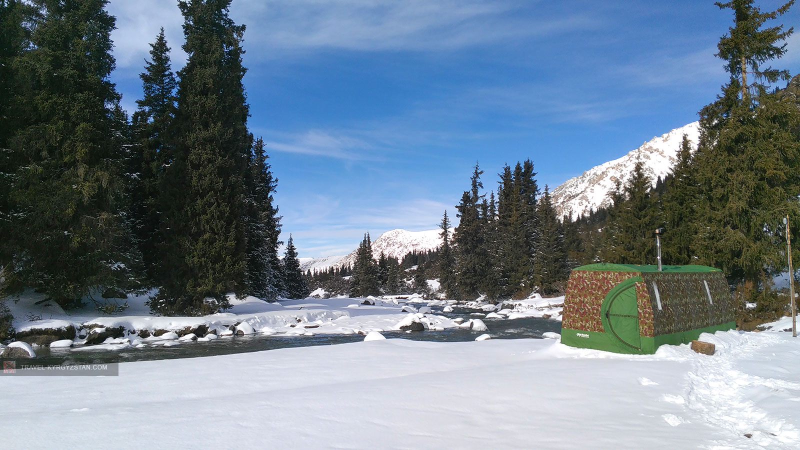 After one week at the Aksuu backcountry skiing yurt lodge we have done a lot of small upgrades all over the camp. We have a slackline and swing now. New sauna looks and feels so great. We already had a couple snow dumps since beginning of November.