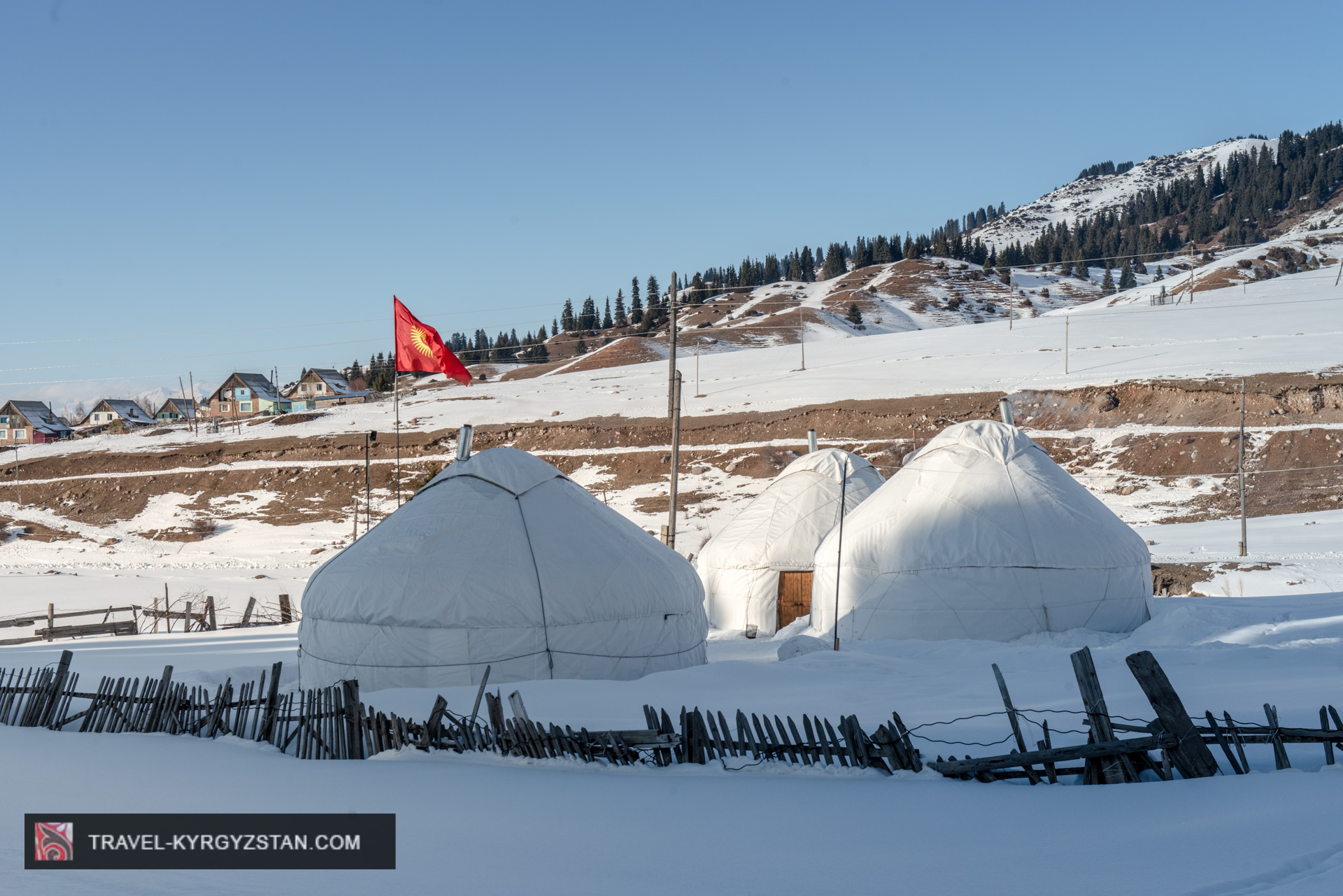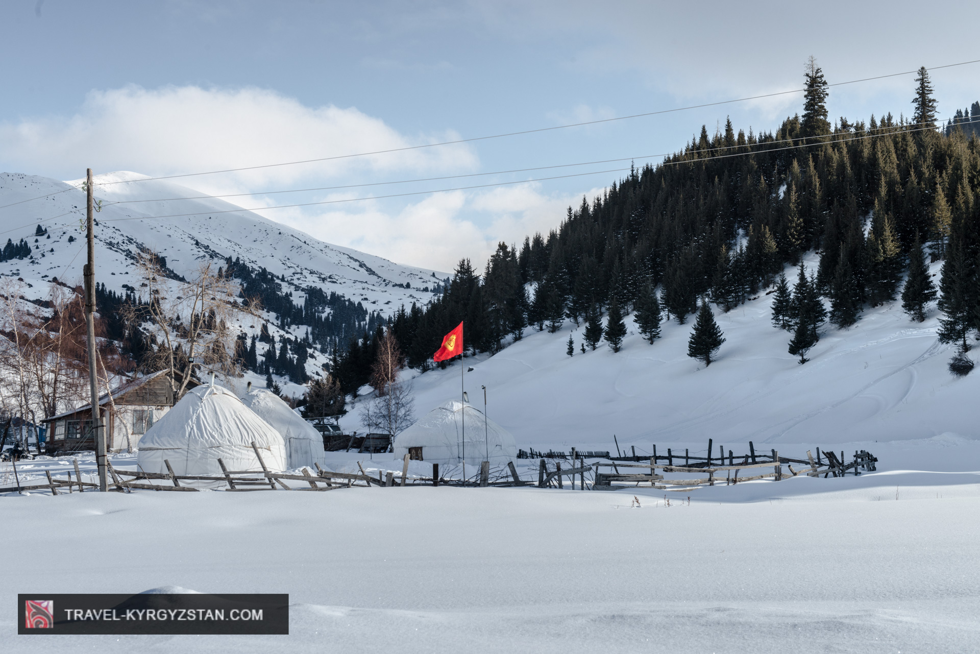 – Shared van / Marshrutka #331 at Ak-Tilek Market (Bazaar) – location map. Make sure that the bus goes all the way to Jyrgalan. Marshrutka runs 3 times a day all year around and costs 80 KGS per person.